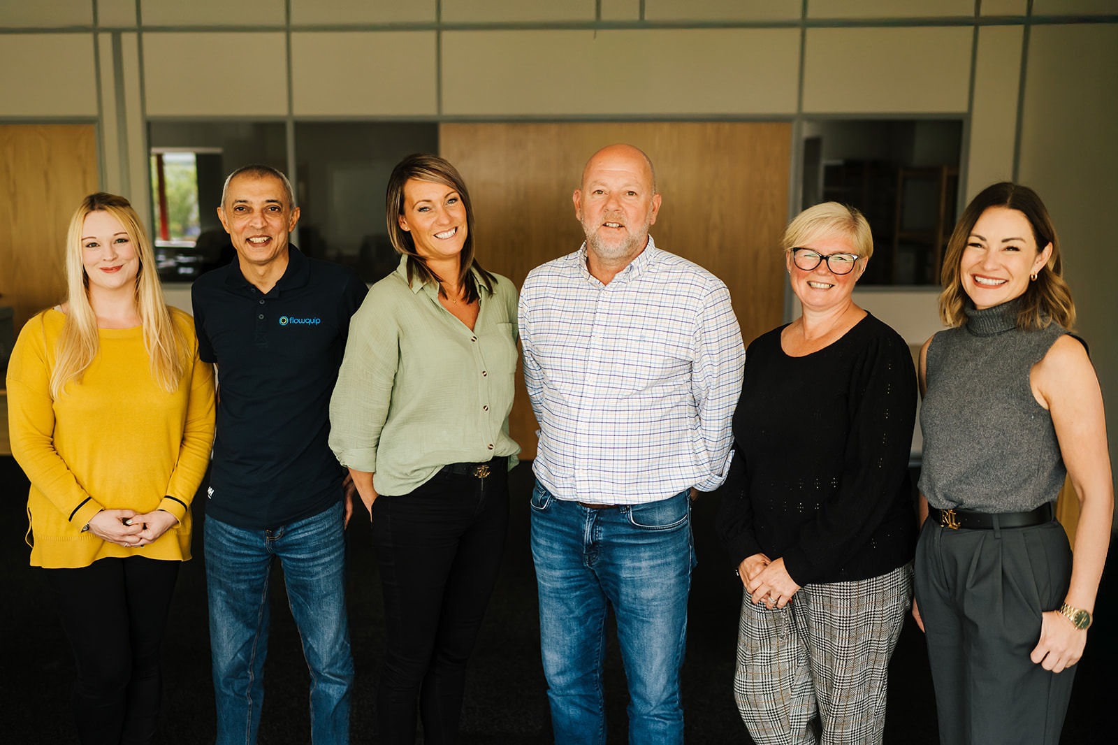 Meet The Team Flowquip have a professionally managed team with over 40 years supplying flow meter solutions to industry. From left to right: Lisa McMahon (Office Manager), Sanjay Sharma (Business Development Manager), Jodi Hamlett (Sales and Service Administrator), Rob Bloomfield (Managing Director), Kath Bloomfield (HR and Quality Assurance), Lucy Wood (Marketing Director).
